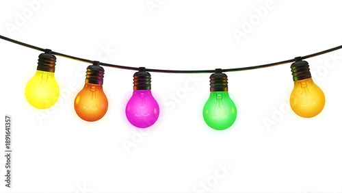 Colorful String Lights Isolated on White – Festive Decorative Bulbs for Celebration