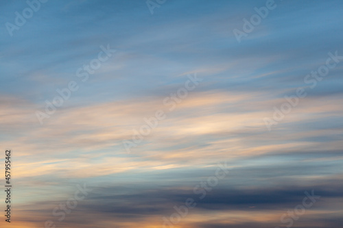 Colorful sunset or sunrise in the sky. The sky and clouds are painted in different delicate colors.