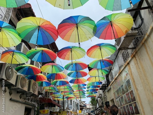 colorful umbrellas in the city, Penang, Malaysia