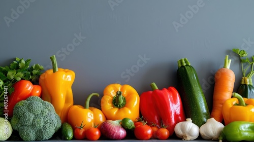 Colorful Vegetables: An assortment of colorful vegetables like bell peppers, carrots, and zucchini.