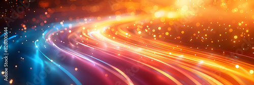 Colorful vibrant neon light stripes and dots, illuminated modern light waves, luminous lighttail stripes on a dark moody background, futuristic design, modern elegant light art