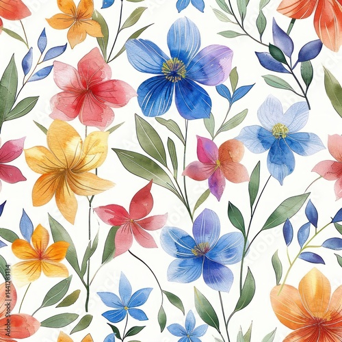flower, colourful, watercolor, floral, leaf, green, blue, red, orange, yellow, purple, nature, botanical, spring, summer, flower petals, stem, delicate, fresh, bright, vibrant, garden, blooming, artistic, pattern, floral pattern, background, white background, natural, organic, illustration, decorative, beauty, ornamental, freshness, growth, blossom, decoration, soft, peaceful, cheerful, elegant, leaf, plant, floral arrangement, colorful flowers, hand-painted, flora