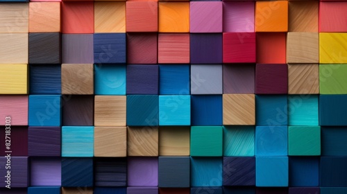 Colorful wood texture abstract block stack wooden 3d cubes colorful cubic background