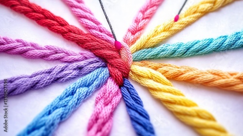 threaded, thread, rainbow, colours, craft, textile, bricolage, knit up, weaving, crochet, embroidery, hand-made, texture, background, art, supply, bright, high-coloured, many-coloured, thread, fiber, closeup, detailed, studio, shot, needlecraft, colourful, art, design
