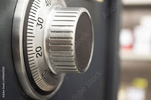 combination lock on the safe. close up, gray safe