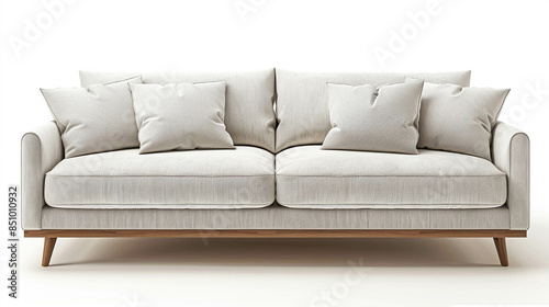 Comfortable and modern light beige sofa on a white background
