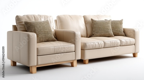Comfortable Light Beige Leather Sofa Set with Soft Cushions Perfect for Modern Living Room Decor and Cozy Interior Spaces