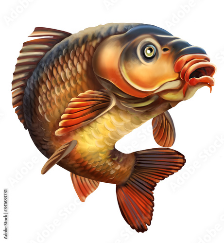 Common Carp Illustration. Isolated on white background.