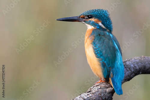 Common kingfisher, Alcedo atthis. Close-up of a beautiful bird, blurred smooth background