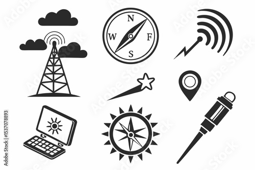 icon, set, vector, symbol, icon, illustration, signs, design, black, music, web, radio, collection, sport, travel, tower