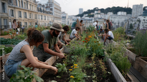 neighbourhood, sustainability, garden, plant, neighboring, vegetable, flower, community, dirtied, bed, morning, urban, green, leaf, clothing, glove, trowel, pot, shovel, watering, growth, texture, tree, background, brick, home, structure, natural, teamwork, group, gardening, herb, tool, blossom, compost, nature, eco, cultivation, harvest, dirt, environment, cooperation, activity, sunlight, city landscape, lifestyle, yard