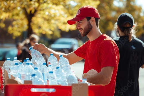volunteer, community, bottled, water, event, autumn, sunny, day, charity, distribution, support, organisation, participation, people, teamwork, preparation, local, helping, hydratation, nature, engagement, service, gathering, smile, program, activity, warm, weather, kindness, generosity, logistic, participant, refreshing, public, camaraderie, initiative, collaboration, health, happiness, youth, environmental, awareness, spirit, resource, sharing, supply