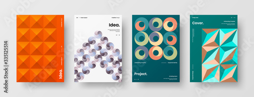 Company identity brochure template collection. Business presentation vector A4 vertical orientation front page mock up set. Corporate report cover abstract geometric illustration design layout bundle.