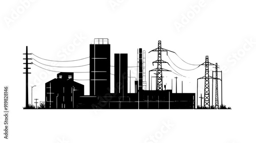 complex, storage, container, power, line, utility, pole, industrial, architecture, large, factory, manufacturing, functional, production, equipment, heavy, industry, infrastructure, organised, robust, practical, illustration, art, vector, graphic