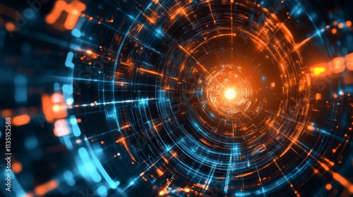 technology, light, space, fractal, design, circle, illustration, pattern, radar, science, texture, tunnel, motion, concept, wallpaper, energy, digital, cyberspace, glow, geometry, futuristic, blue, black, mathematic