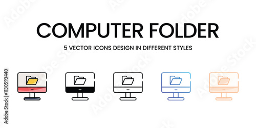 Computer Folder icons set in different style vector stock illustration