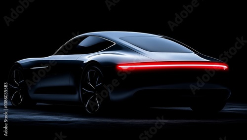 Concept Car Rear View, Dynamic Lines and Sleek Design with Red Taillight Illumination on Dark Background