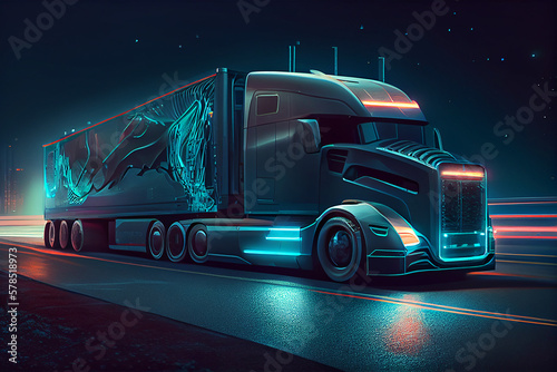 Concept illustration of an electric truck. Generative AI.