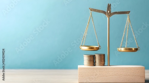 Conceptual image of a balance scale with coins on one side representing the balance between financial risks and rewards in investments business decisions and wealth management