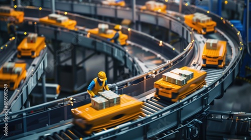 conceptual, photo, warehouse, men at work, automated, system, sorting, moving, package, act, nubes, logistic, supply, chain, management