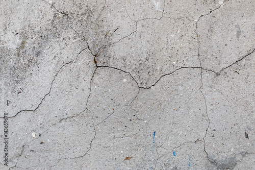 Concrete wall texture with cracks. Old gray cement background.