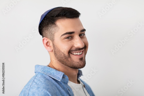 jew, man, young, home, smiling, portrait, lifestyle, happy, excited, relax, rest, positive, guy, male, jewish, israeli, person, model, people, studio, background, posing, cheerful, confident, copy space, face, expression, free space, banner, standing, looking, wearing, photogenic, isolated, single, alone, success, student, youth, judaism, israel, closeup, religious, bearded, ethnicity, casual attire
