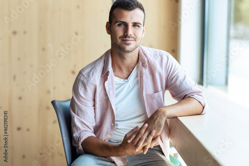 man, adult, confident, smart, intelligence, expressing, creativity, happy, interesting, casual attire, business, businessman, cheerful, communication, digital, entrepreneur, male, indoor, job, looking, marketing, office, people, portrait, professional, project, startup, stylish, view, network, work, working, window, wellness, lifestyle