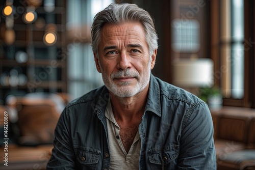 Confident Middle-Aged Man Exuding Wisdom in Casual Fashion