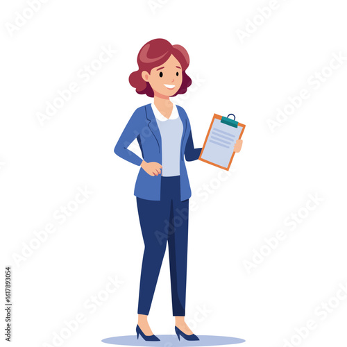 Confident Woman Boss Holding Checklist Clipboard – Empowered Female Leader Planning Tasks, Business Management, Organization, Project Planning, Corporate Woman Illustration for Office and Workplace.