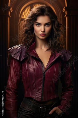 dark hair, leather jacket, studio shot, wavy hair, high contrast