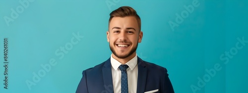business, professional, businessman, suit, attaching, smiling, portrait, head shot, corporate, office, executive, confident, successful, happy, young, adult, male, caucasian, blue, background, standing, posing, formal, stylish, serious, focused, looking, friendly, positive, leader, career, finance, banking, loan, officer, optimistic, cheerful, energetic, charming, sophisticated