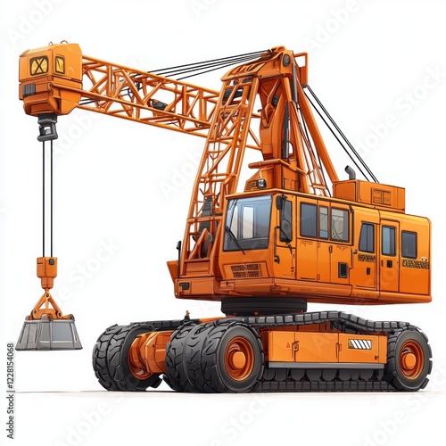 Construction Crane isolated on white background. Heavy Machinery. Tower Crane. Tall Crane Structure. Construction Equipment. Crane Design Element. Construction Crane isolated for Designers.