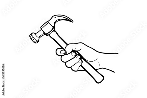 men at work, hand, hammer, line, drawing, vector, vignetting, construction, manual, labor, build, tool, outline, minimal, graphic, design, clean, simple, hard hat, job, project, work, repair, duty, industrial, mechanic, handyman, strong, metal, iron, steel, nail, grip, impact, bricolage, safety