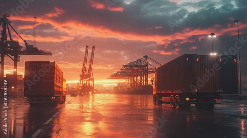 container, truck, ship, port, business, logistic, transportation, bridge, shipyard, sunrise, logistic, import, export, transport, e-business, aeroplane, future, express, dockyard, storage, dock, commercial, shipping, cargo, international, technology, global, freight, crane, unloading, harbor, sunset, sky, water, sea, night, river, city, landscape, sun, beach, evening, travel