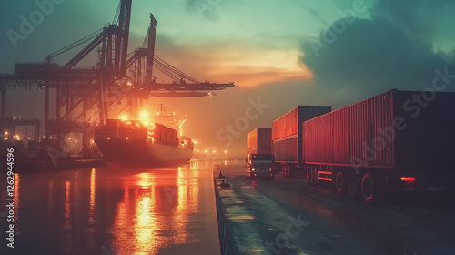 container, truck, ship, port, business, logistic, transportation, bridge, shipyard, sunrise, logistic, import, export, transport, e-business, aeroplane, future, express, dockyard, storage, dock, commercial, shipping, cargo, international, technology, global, freight, crane, unloading, harbor, sunset, sky, water, sea, night, river, city, landscape, sun, beach, evening, travel