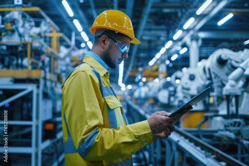 industry, stem, technician, business, technology, people, computer, communication, robot, factory, engineering, job, engineer, connection, automation, occupation, automated, robotic, adult, 40s, caucasian, female, holding, indoor, industrial building, looking, mature woman, one person, smiling