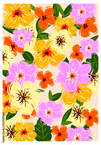 Contemporary tropical,botanical,exotic pattern vector illustration background. Modern floral with Hawaiian motive.