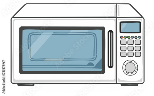 microwave, oven, appliance, kitchen, cooking, heating, food, warm, defrost, meal, home, household, domestic, electronic, machine, convenience, quick, fast, prepare, illustration, cartoon, vector, graphic, drawing, flat, line, art, icon, simple, white, blue, display, control, panel, buttons, dial, door, window, modern, clean, culinary, cook, warming, preparation, microwave, appliance, kitchen