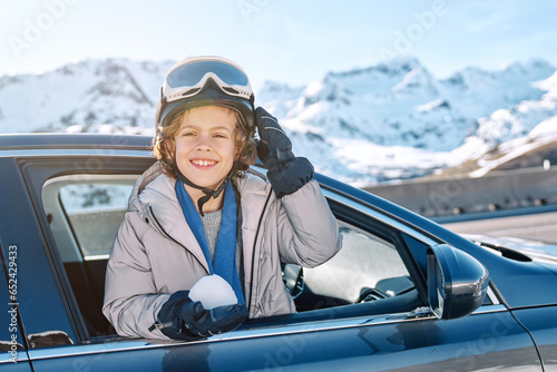 pastime, goggles, window, children, frost, looking away, cheerful, recreation, ski, road, outside, car, ridge, carefree, horizontal, snow, optimist, climate, fun, activity, smile, winter, joy, positive, outerwear, joyful, journey, playful, sunlight, winterly, boy, cold, transport, road trip, freeze, adventure, nature, ride, delight, snowball, leisure, weather, vehicle, having fun, pleasure, automobile, mountain, childhood