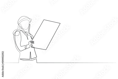continuous line of young female engineer.one line drawing Beautiful engineer.Female engineer opening paper,reading work plan.single line vector illustration