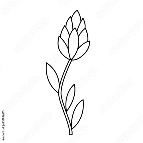 Contour black-and-white drawing of blooming flower. Vector illustration. Coloring page.