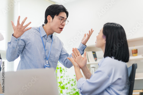 asian, chinese, japanese, korean, office, colleague, discussion, tension, workplace, communication, employee, professional, meeting, conflict, stress, man, woman, gesture, anxiety, afternoon, setting, interaction, expression, dialogue, career, emotion, teamwork, solution, business, collaboration, management, professionalism, negotiation, listening, respect, clarity, attire, workspace, serious, engaged