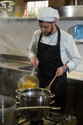 chef, risotto, cooking, kitchen, cook, rice, food, meal, eatery, occupation, commercial, professional, job, stove, white, pouring, industry, italian, pan, modern, sauce, stirring, metal, epicure, man, working, preparation, labor, kitchen utensile, boiling