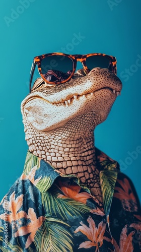 lizzard, sunglasses, tropical, shirt, stylish, reptile, fun, summer, vacation, vibrant, animal, fashion, exotic, quirky, relaxed, personality, colours, bright