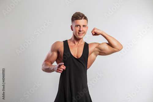 adult, athlete, athletic, background, beautiful, black, bodybuilder, choice, cool, finger, fit, fitness, guy, gym, coiffure, hand, photogenic, health, healthy, isolated, male, man, man, motivation, muscle, muscular, portrait, power, powerful, promotion, recommend, sexy, shirtless, show, showing, sport, sport, sporty, strength, strong, studio, stylish, t-shirt, tank top, training, trendy, white, physical exercise