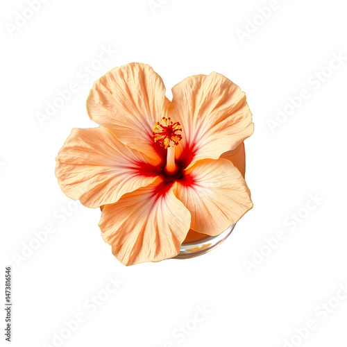 Coral Hibiscus Flower Blossom with Red Center Top Angle Isolated Transparent Background Clip Art