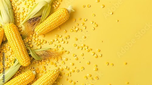 seed, scattered, yellow background, closeup, vibrant, detailed, harvest, fresh, textured, agricultural