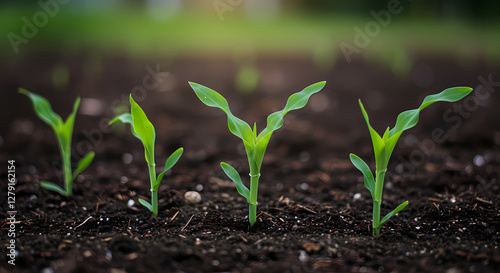 Corn Sprouts in the Soil with a Blurred Background