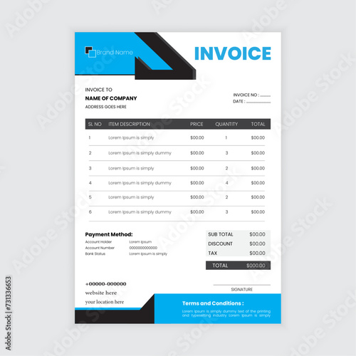 blue, black, invoice, design, template, background, illustration, vector, shape, colours, business, corporate, creative, company, purchase, credit, receipt, calculate, payment, enterprise, list, catalog, consignment