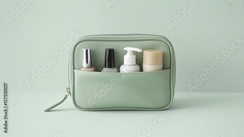 Cosmetic bag with beauty products makeup nail polish